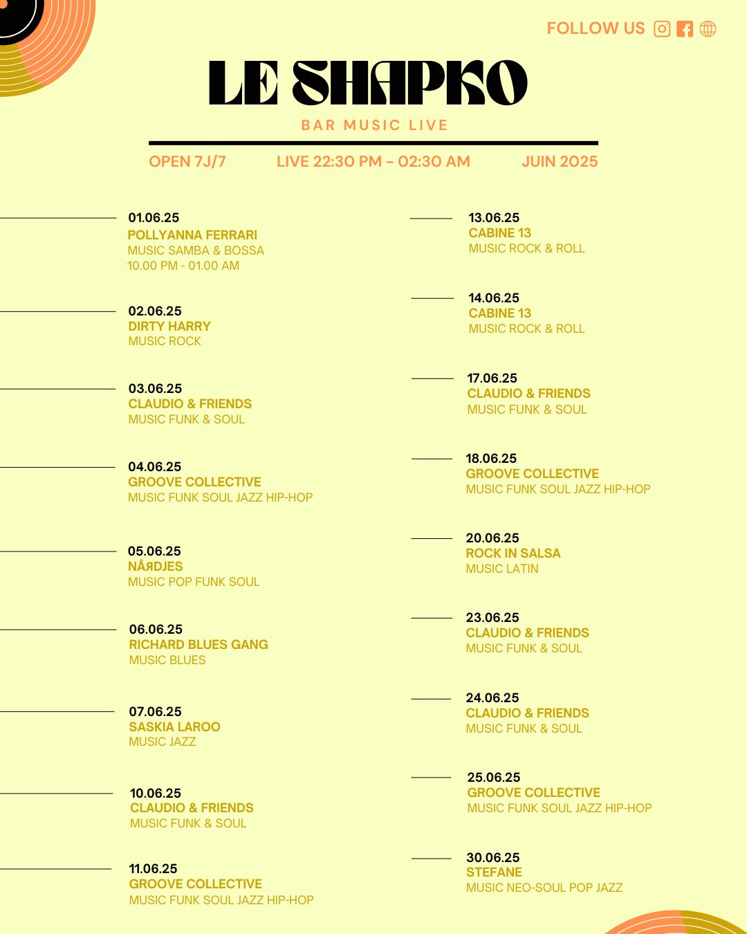 Tous les mardis soirs , une soirée funk & soul au Shapko à Nice avec Claudio & Friends. De 22h30 à 02h30, ambiance festive garantie ! Entrée libre. L'occasion idéale pour se retrouver entre amis et profiter d'une soirée festive.
